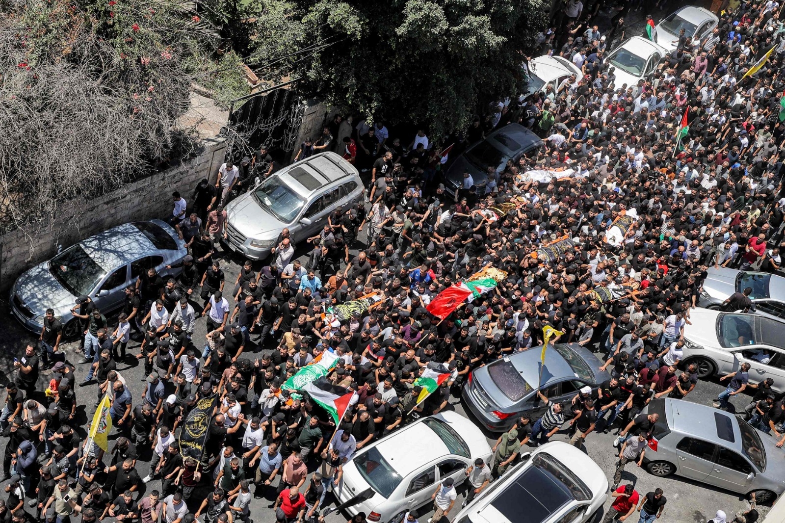 آلاف الفلسطينيين يشيعون جثامين شهداء العدوان الإسرائيلي على جنين | صور