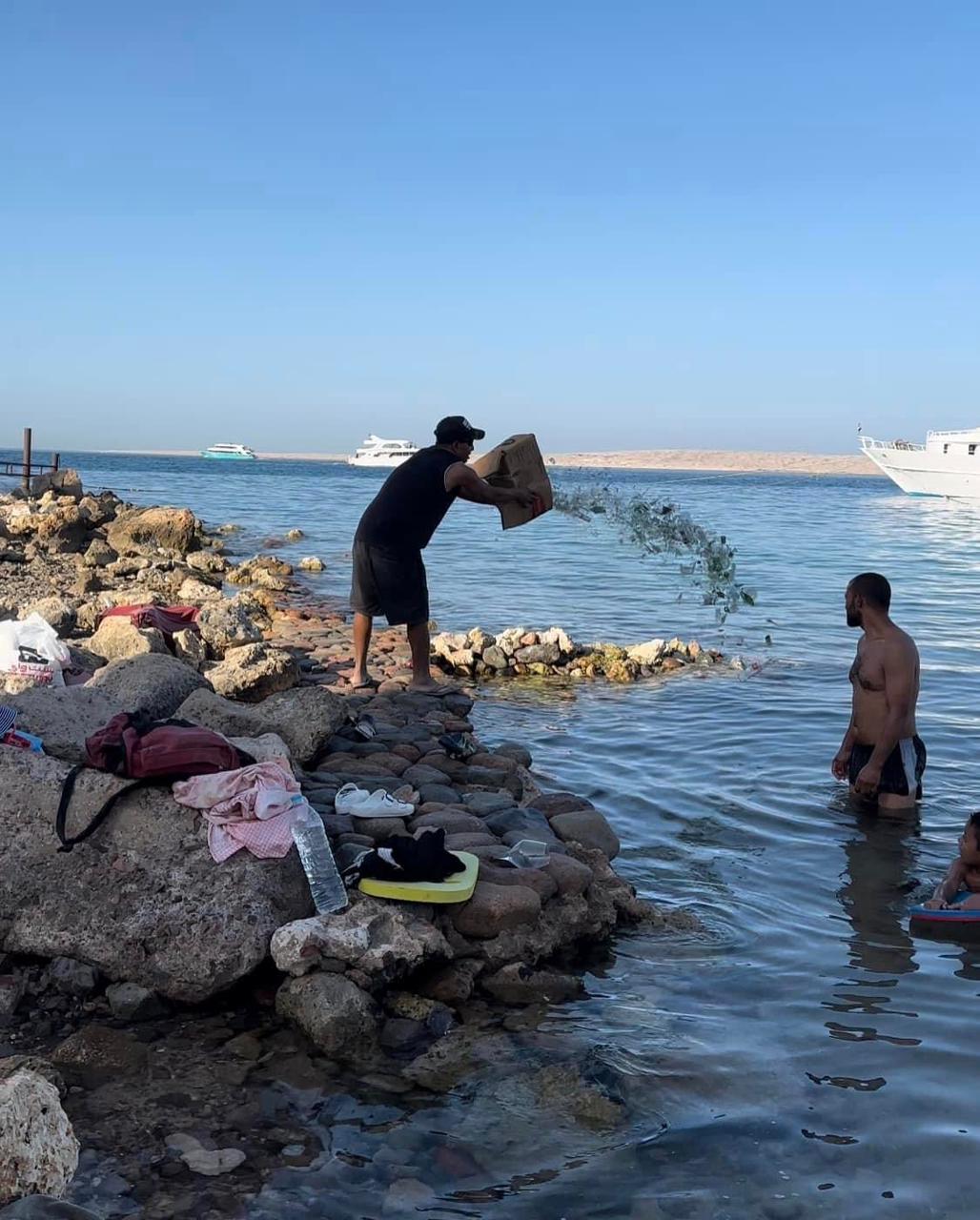 كان رواد مواقع التواصل الاجتماعي من المصريين والأجانب، قد طالبوا بفتح تحقيق عاجل واتخاذ الإجراءات القانونية في واقعة إلقاء أحد العاملين بمطعم سياحي في الغردقة، مخلفات وبقايا زجاجية وكراتين ورقية في مياه أحد الشواطئ المفتوحة ليمنع رواد الشاطئ من النزول به، ما أصاب أحد الأطفال الموجودين بالشاطئ بجرح في قدمه من بقايا الزجاج.