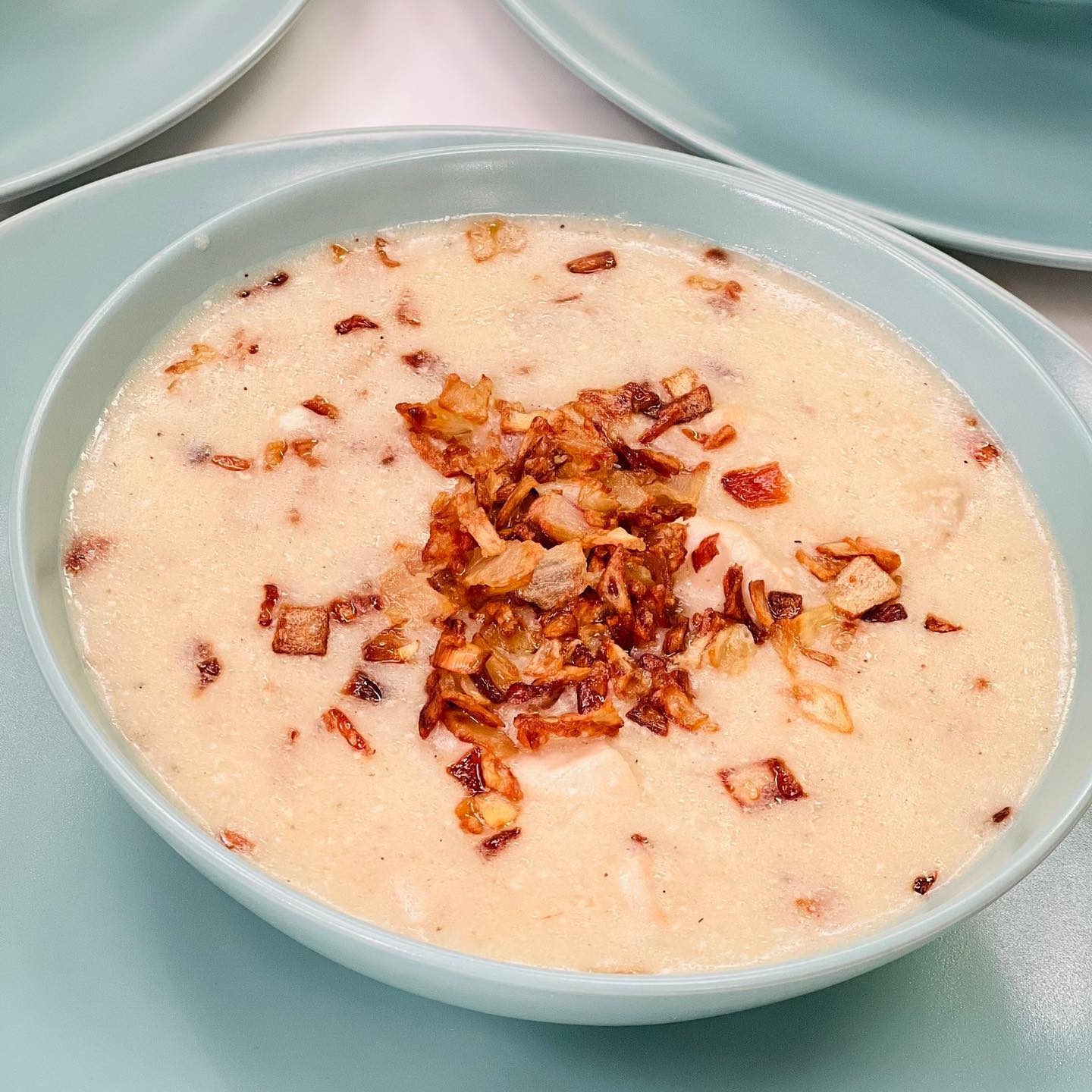 - نقدم الكشك الصعيدي في أطباق مع القليل من البصل المحمر على وجه الطبق.