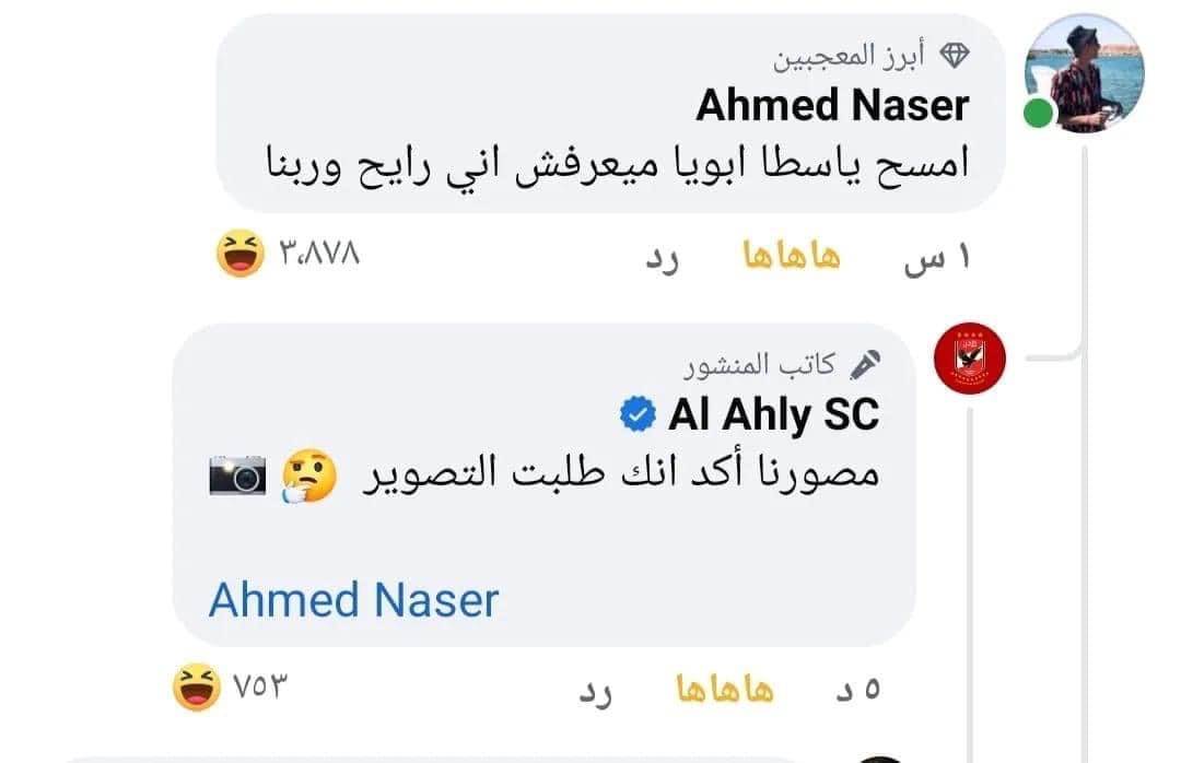 ورد أدمن صفحة النادي الأهلي، على المشجع الأهلاوي قائلًا: مصورنا أكد أنك طلبت التصوير.