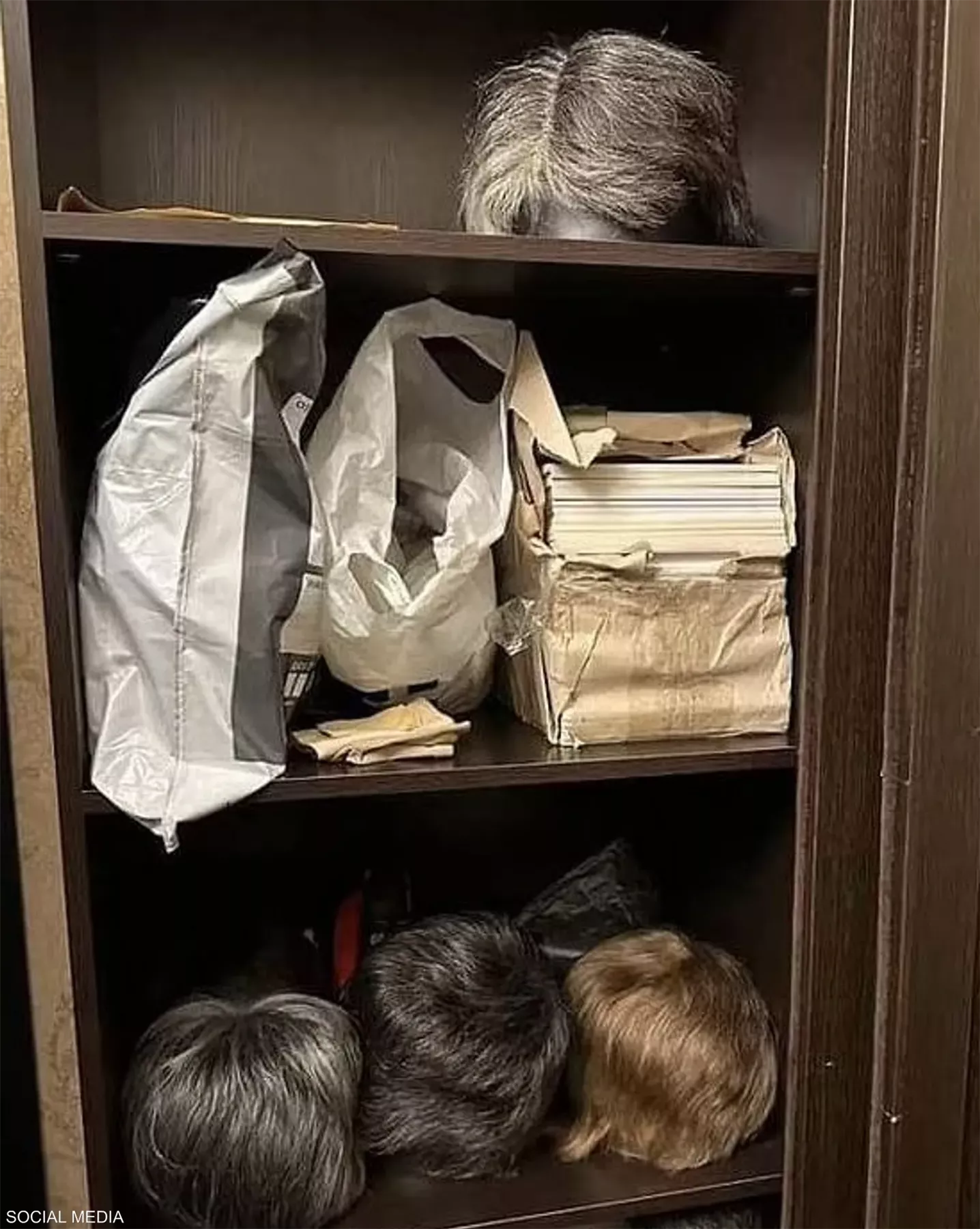 وتم العثور على مخابئ ضخمة للأسلحة، بما في ذلك بنادق هجومية وخراطيش، بالإضافة إلى خزانة كبيرة تحتوي على العديد من الشعر المستعار بأشكال وألوان مختلفة.