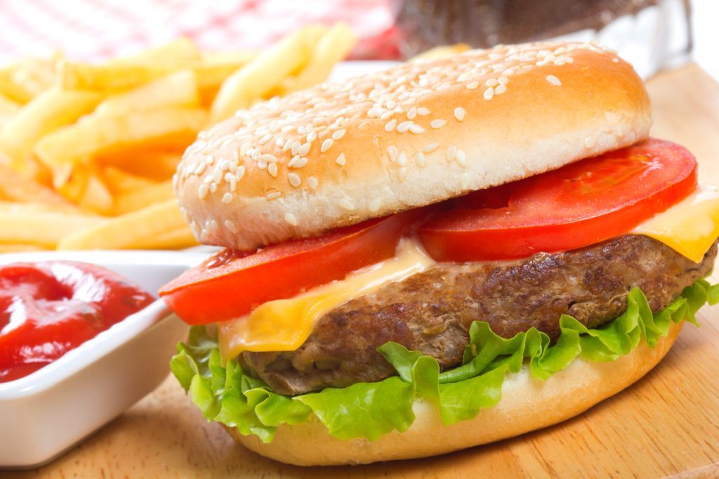 - تزيين ساندوتش البرجر، بالخس والطماطم والبصل.