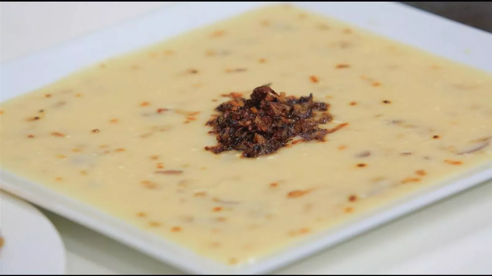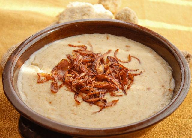 - نبدأ في تقديم طريقة عمل الكشك الصعيدي، في أطباق فارغة ووضع القليل من البصل المحمر عليها.