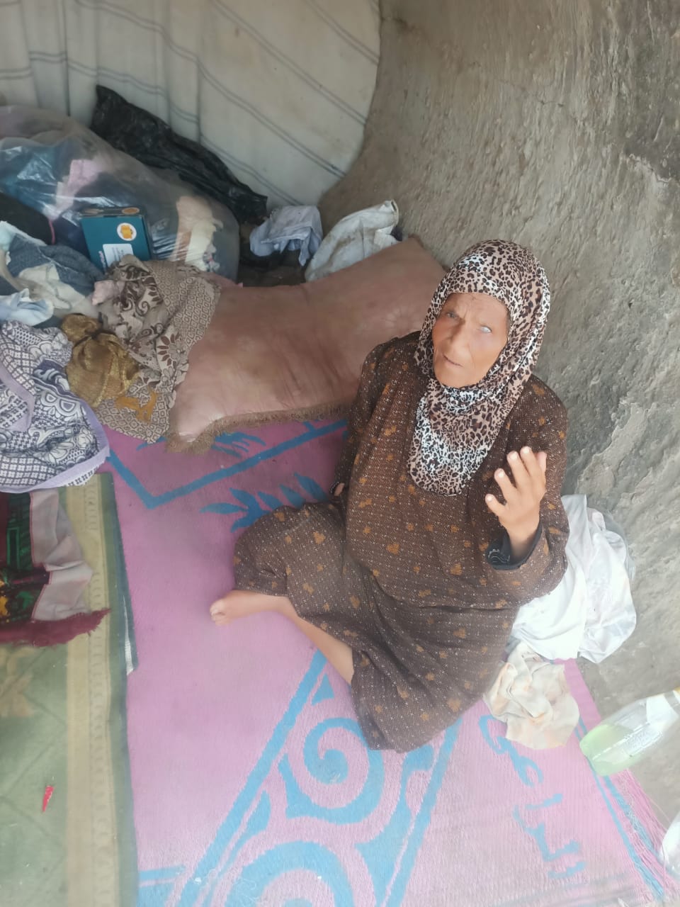 سيدة مسنة بلا مأوى تعيش داخل ماسورة صرف مغطى