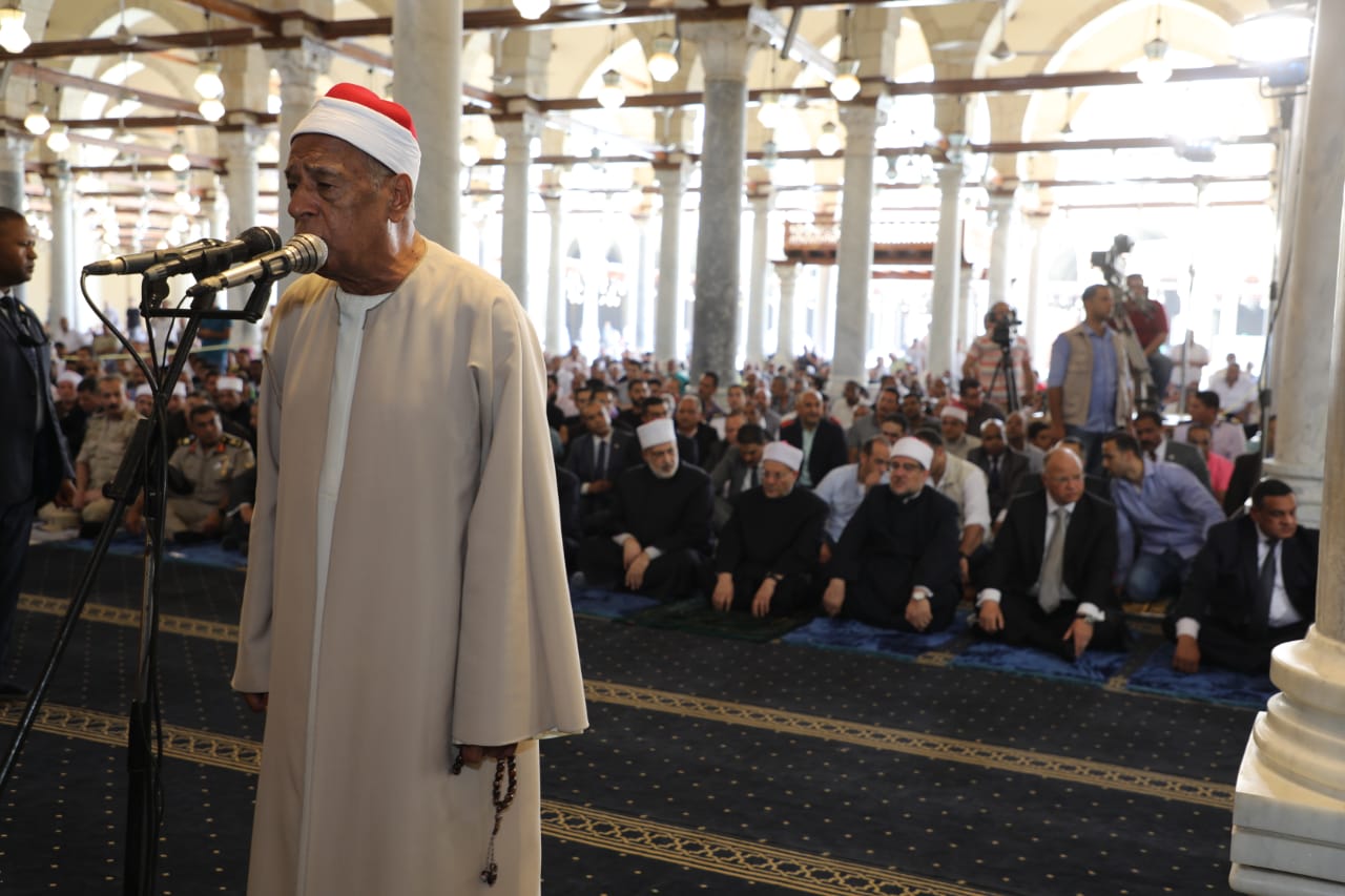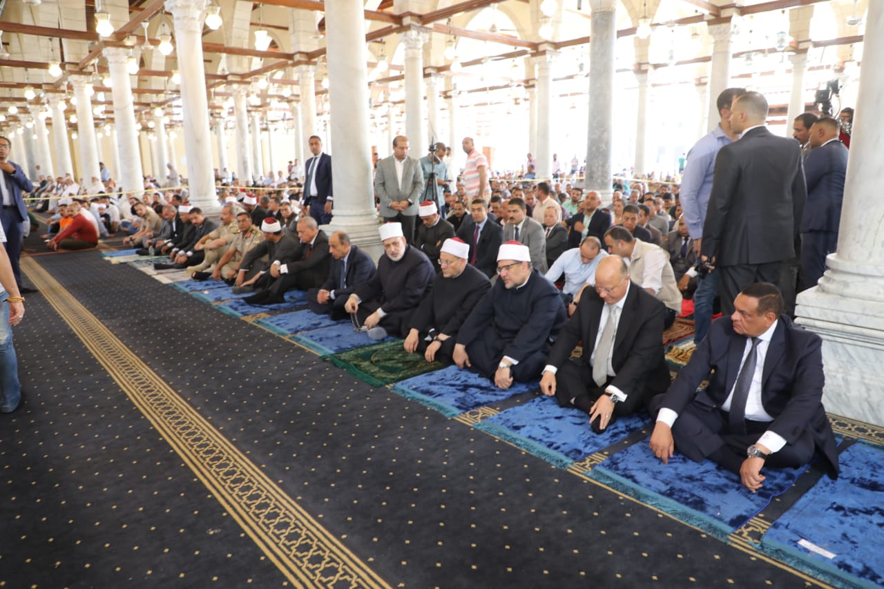 وحضر صلاة الجمعة، كلا من الدكتور محمد مختار جمعة وزير الأوقاف، واللواء هشام آمنة وزير التنمية المحلية، وحسن شحاتة وزير العمل، والفريق محمد عباس وزير الطيران المدني.