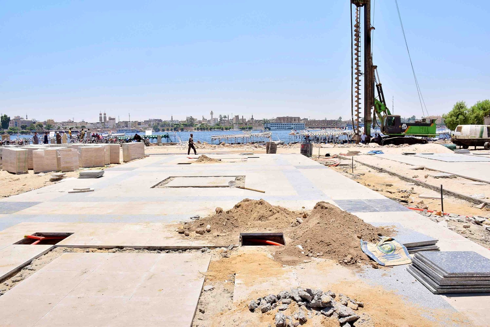 وشملت جولة محافظ الأقصر، تفقد مشروع إنشاء كورنيش النيل بمدينة القرنة بالبر الغربي للأقصر، والذي يحتوي على العديد من الأعمال بمسطح عام يتجاوز 20 ألف متر مربع، حيث قام المحافظ بالوقوف على نسب التنفيذ بالمشروع، كما تفقد المحافظ بدء تنفيذ أعمال الخوازيق لإنشاء الممشي الزجاجي داخل النيل أمام منطقة المطاعم.