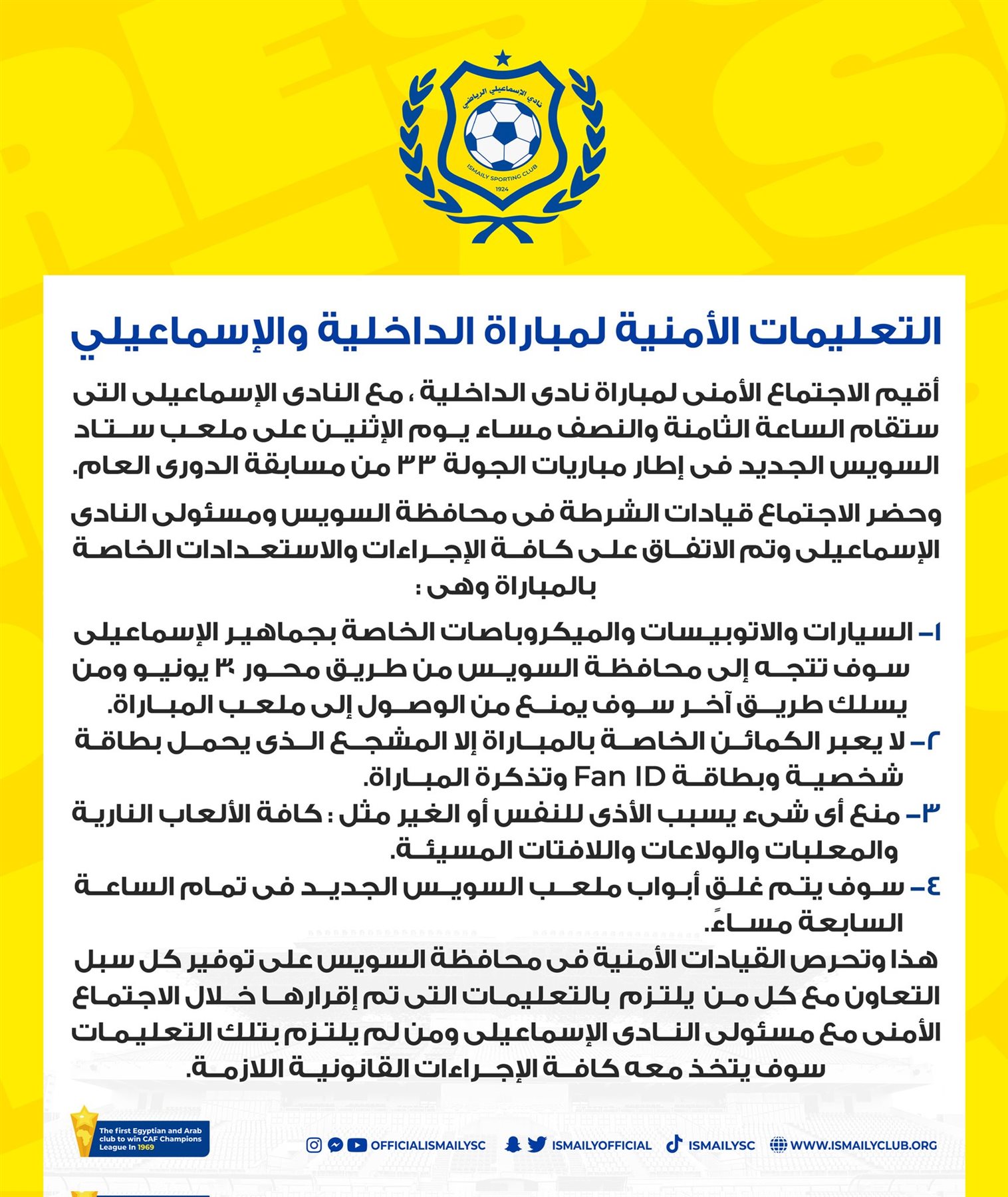 التعليمات الأمنية لـ مباراة الداخلية والإسماعيلي