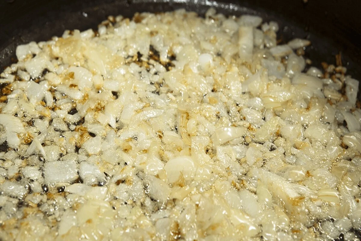 ضعي الزبدة في وعاء على النار والبصل المفروم ثم شوحيه فيها حتى يصفر لونه مع بعض الملح والفلفل.