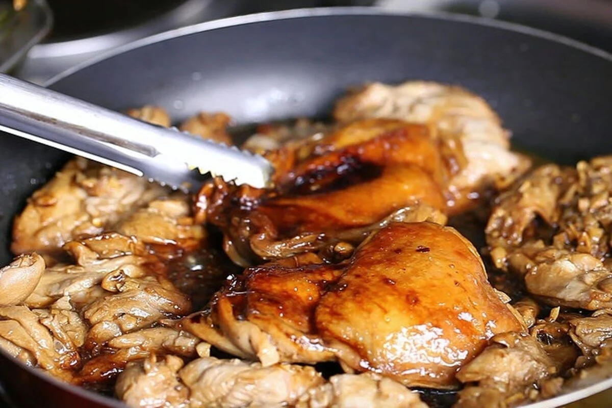 ضعي الصلصة وباقي البهارات وقلبي الدجاج جيدًا واتركيه 5 دقائق.