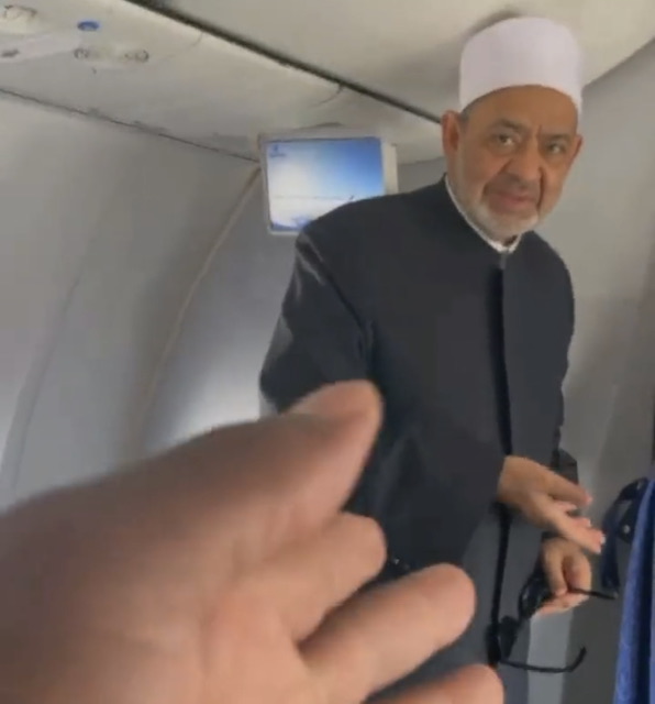 وأتاه الرد من أحد الأصدقاء بمجرد نشر المقطع على صفحته بأن من كان يفسح له الطريق في الطائرة هو الإمام الأكبر أحمد الطيب شيخ الأزهر، أكبر قامة إسلامية في مصر والعالم.