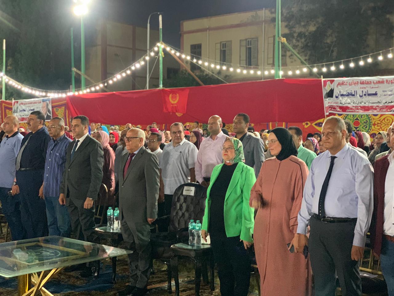وتضمنت الاحتفالية الفعاليات التي حدثت منذ بيان 3 يوليو الذي أنقذ الدولة المصرية من شرور الجماعة الإرهابية، واحتفل المواطنون على نغمات تسلم الأيادي، وتعالت أصواتهم بالهتافات، ورفعوا كذلك أعلام مصر.