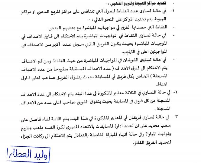 تنص لائحة اتحاد الكرة لحسم صراع الهبوط في الدوري الممتاز، على النظر إلى نتائج المواجهات المباشرة بين الفريقين في البداية، ثم الانتقال إلى فارق الأهداف، وإليكم اللائحة: