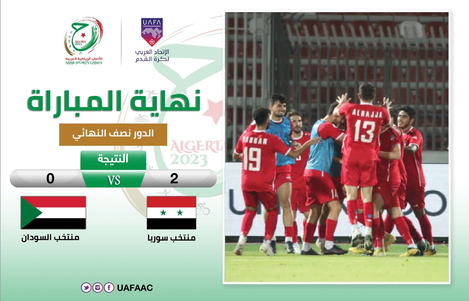 نتيجة مباراة سوريا والسودان في نصف نهائي دورة الألعاب