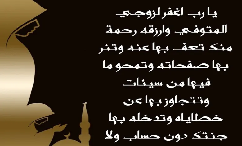 اللهم ثبت زوجي الراحل بالقول الثابت، وارفع درجته واغفر خطيئته وثقل موازينه. اللهم استقبله عندك خاليًا من الذنوب والخطايًا، واستقبله وأنت راض عنه غير غضبان عليه برحمتك يا أرحم الرحمين.