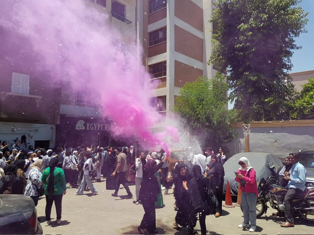 وتجمع طلاب وطالبات الثانوية العامة بالأقصر أمام مدرسة الأقصر الثانوية بنات فيما أطلقوا علية الـ Fun Day محتفلين فرحين بإنهائهم الامتحانات.