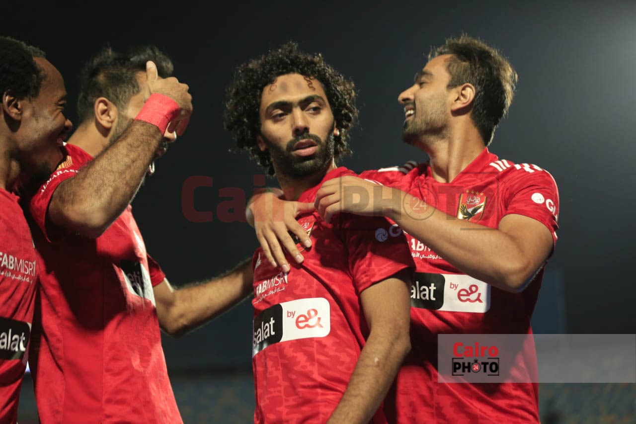 التقطت عدسة القاهرة 24، احتفال حسين الشحات رفقة زملاءه بفريق الأهلي، بعد أن سجل هدفه الأول بتسديدة قوية في الدقيقة 2 من الشوط الأول من المباراة.
