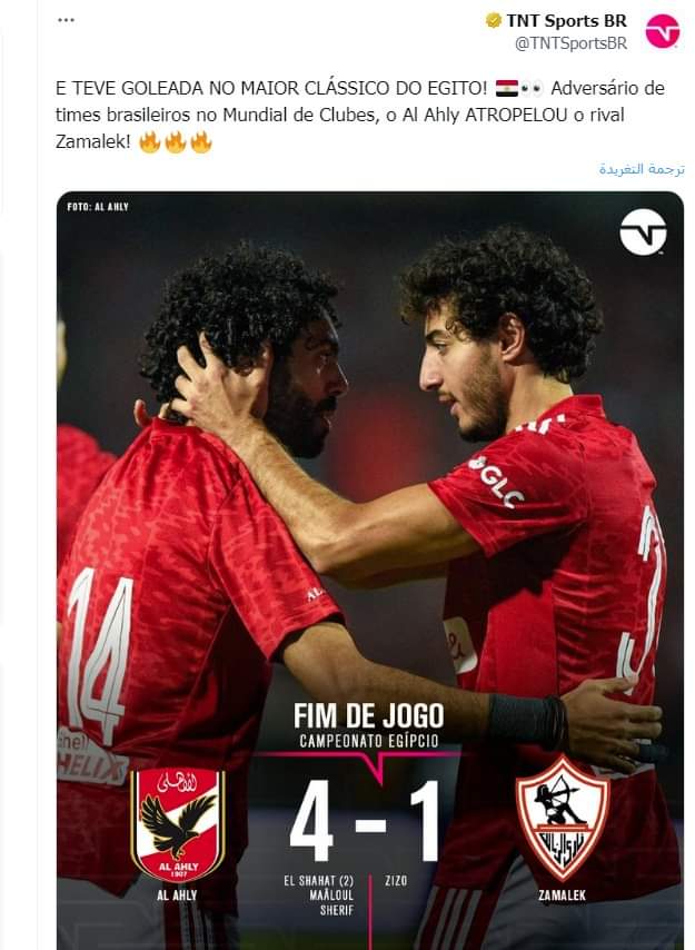 وعلقت شبكة تي إن تي البرازيلية على فوز الأهلي برباعية أمام الزمالك، في لقاء الليلة الذي أقيم على ملعب ستاد القاهرة.