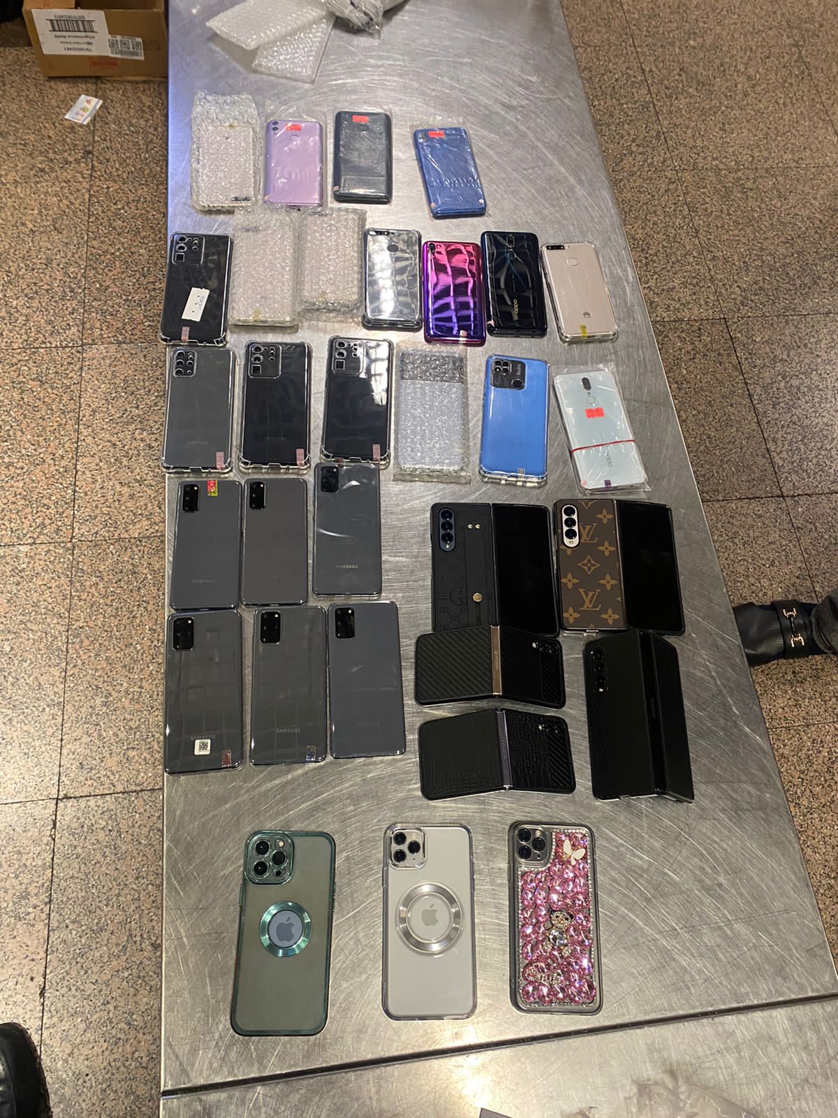 ومن ناحيته، كلف حازم محمد علي مدير الحركة المشرف على صالة الوصول بمبنى الركاب رقم 3 هاني محمود مأمور الجمرك بتفتيش حقائب الراكب يدويا مما أسفر عن وجود كمية من التليفونات المحمولة قام تامر قاسم مدير الجمرك بتكليف لجنة مكونه من حسام الشافعي ومصطفى حسن وعماد صلاح وعبد القوي عزوز مآمير الجمرك باستكمال التفتيش اليدوي بدقة مما أسفر عن وجود كمية اخرى من التليفونات المحمولة مخبأة بين طيات الملابس بالحقائب وأيضا كمية من الشعر المستعار.