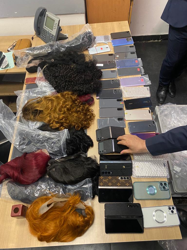 ضبط راكب أجنبي حاول تهريب 31 تليفون وكمية من الشعر المستعار