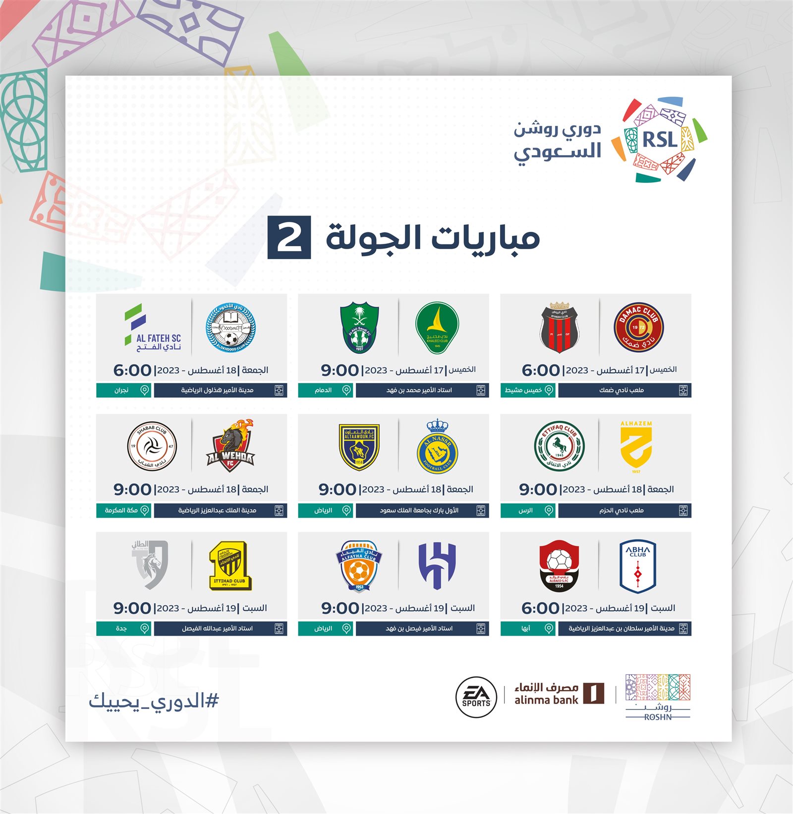 جاءت مواعيد مباريات الجولة الثانية بالدوري السعودي كالتالي: -