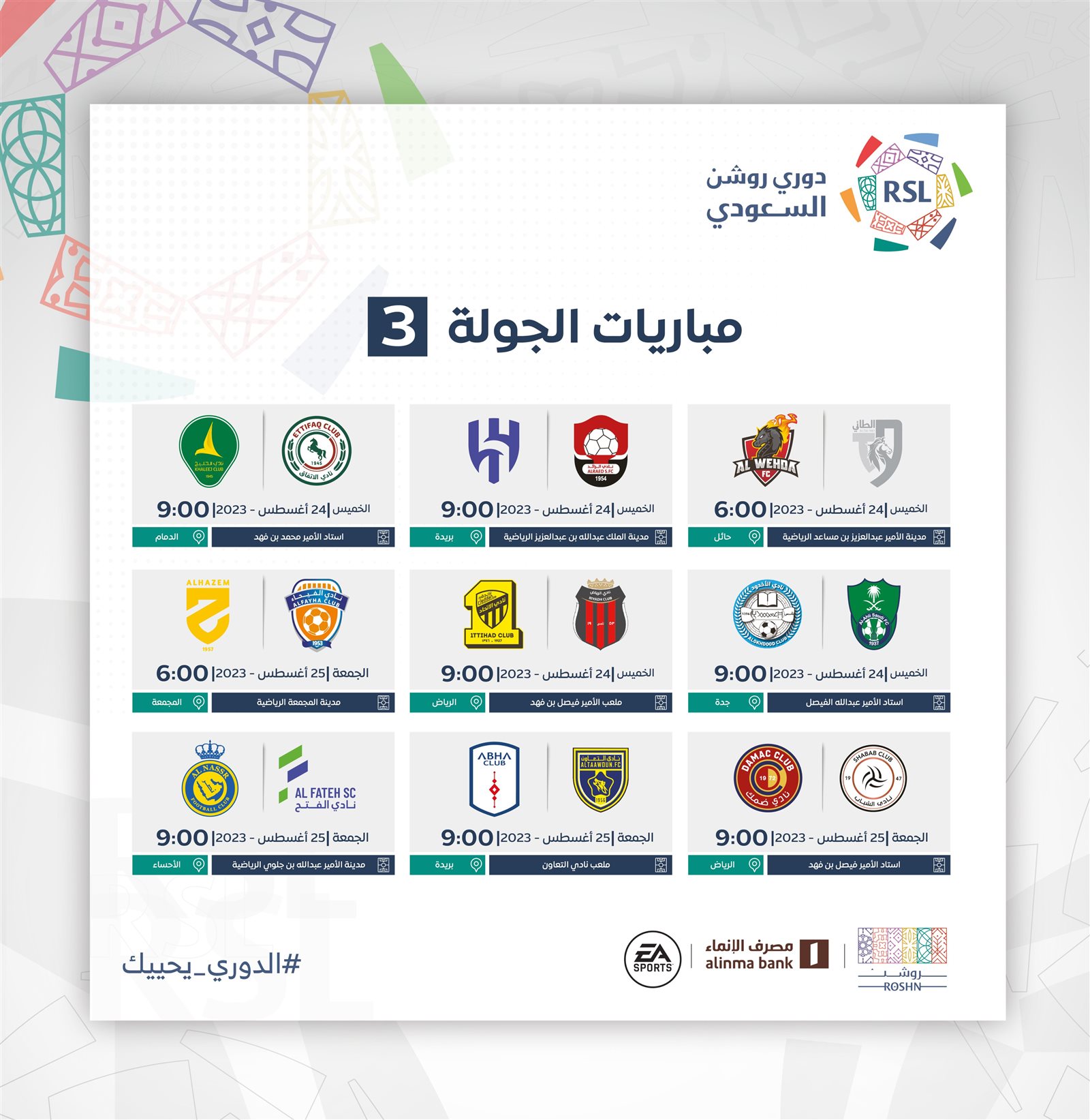 جاءت مواعيد مباريات الجولة الثالثة بالدوري السعودي كالتالي: -