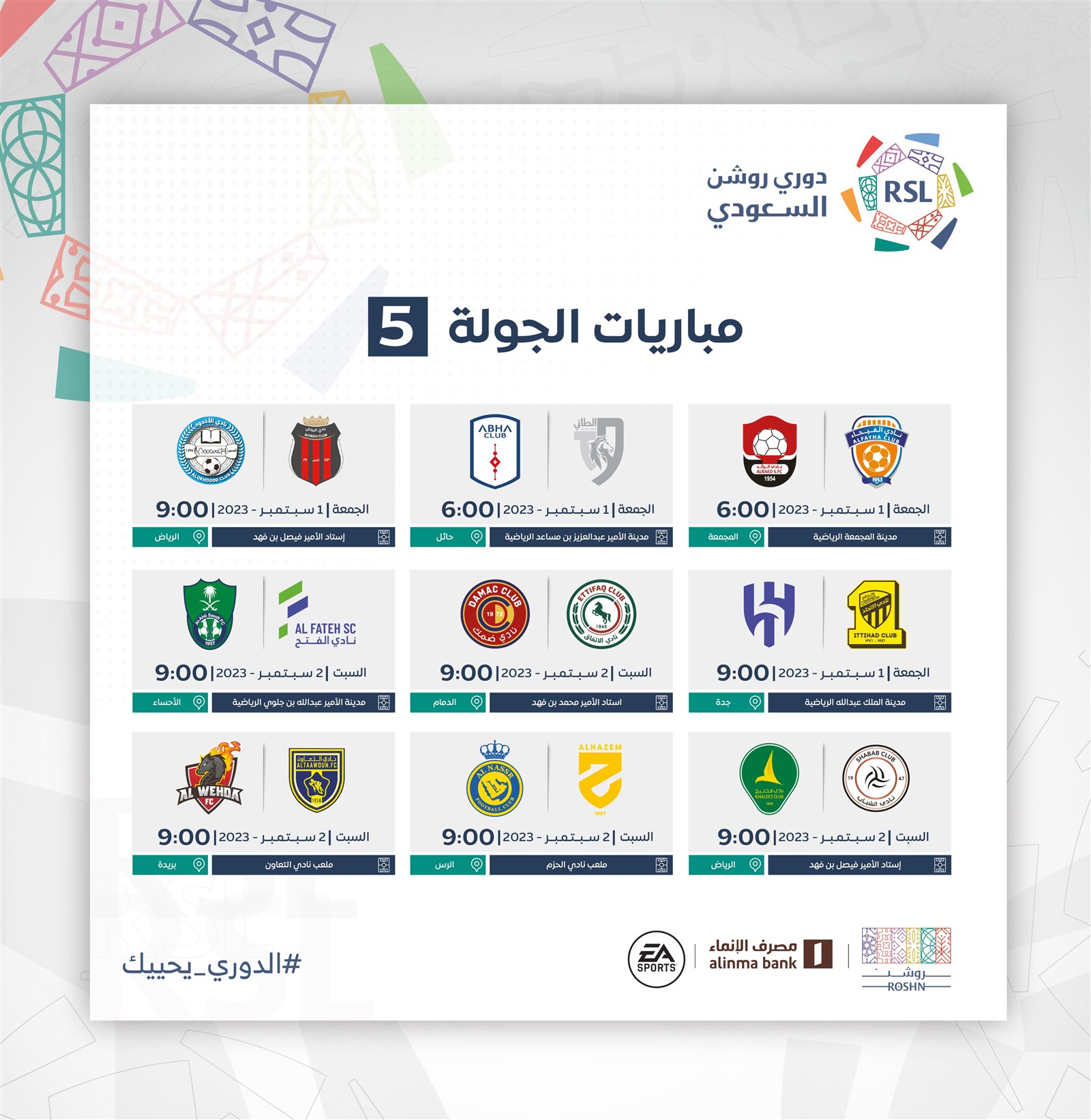 - مواعيد مباريات الجولة الخامسة بالدوري السعودي للمحترفين 2023/2024