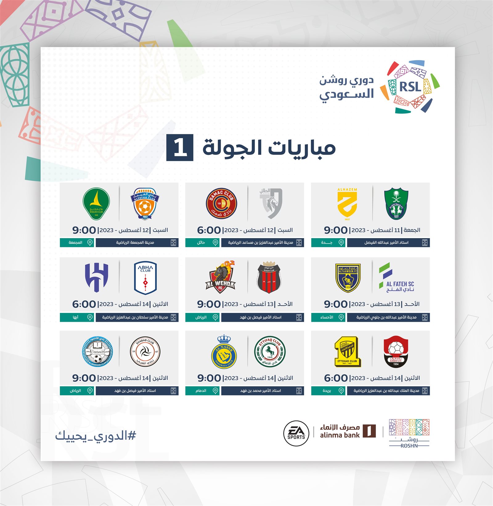 - مواعيد مباريات الجولة الأولى بالدوري السعودي للمحترفين 2023/2024