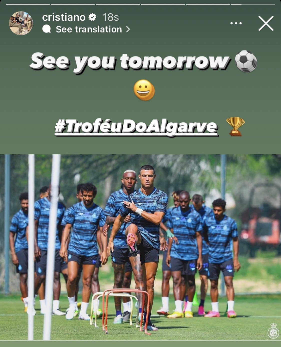 ونشر رونالدو عبر حسابه الرسمي على موقع التواصل الاجتماعي انستجرام صورة له من تدريبات فريق النصر الختامية لمواجهة سيلتا فيجو الودية: وعلق عليها: "اراكم غدًا".