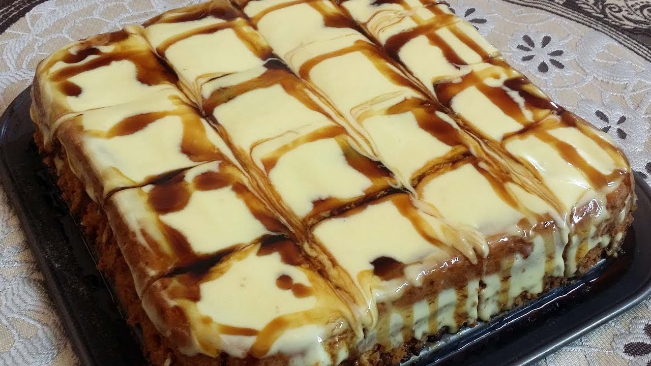 - بينما في الخطوة الخامسة يخرج القالب ويوضع عليه خليط صوص الشوكولاته، ويترك في الثلاجة لمدة ساعة، ثم يقطع مربعات صغيرة ويقدم لأفراد الأسرة.