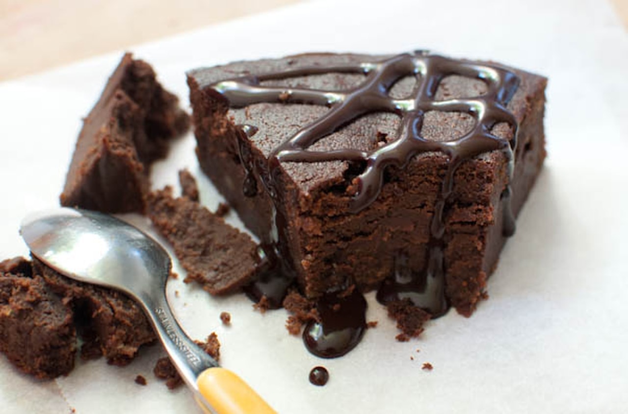 - بعد نضج الجاتو شاتو يترك لمدة 5 دقائق وبعدين يخرج من الفرن ويوضع عليه كوب من صوص الشوكولاته.