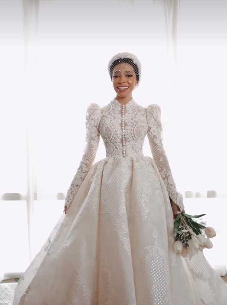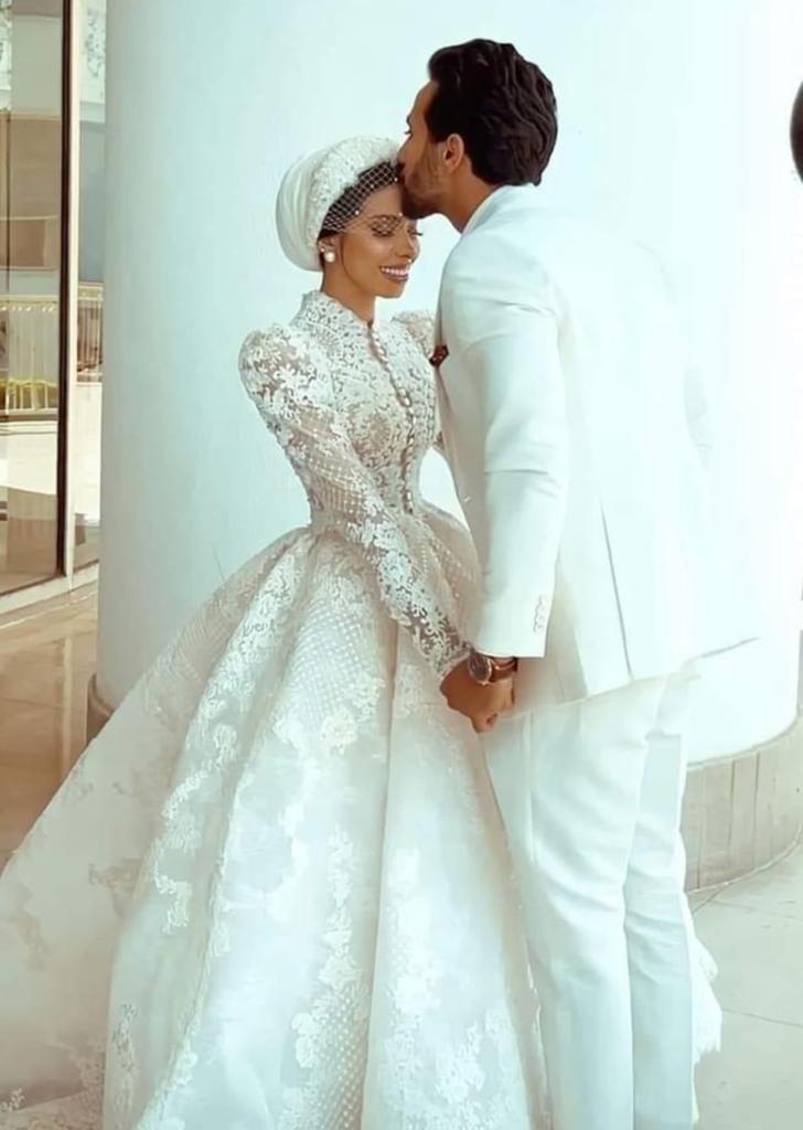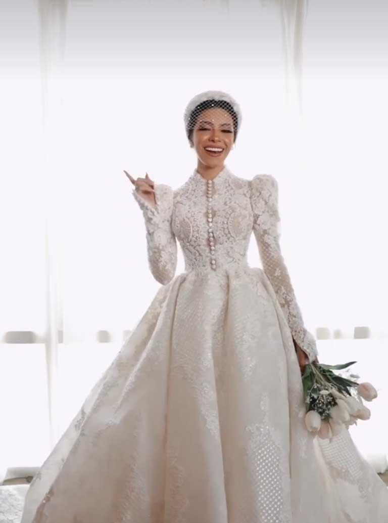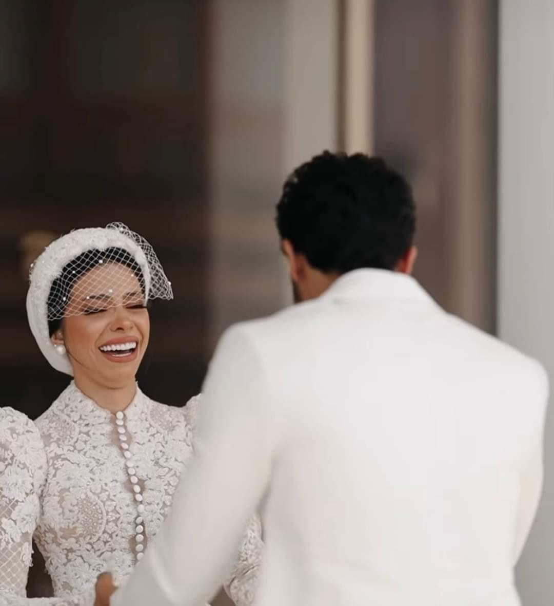 وتمكنت منة من خطف الأنظار بسبب إطلالتها المختلفة، حيث اعتمدت على فستان يشبه تصميم فستان الأميرات باللون الأبيض، مع تربون صمم بشكل مميز لها، لتصبح حديث رواد مواقع التواصل الاجتماعي منذ نشر إطلالتها الأول في عقد القران.