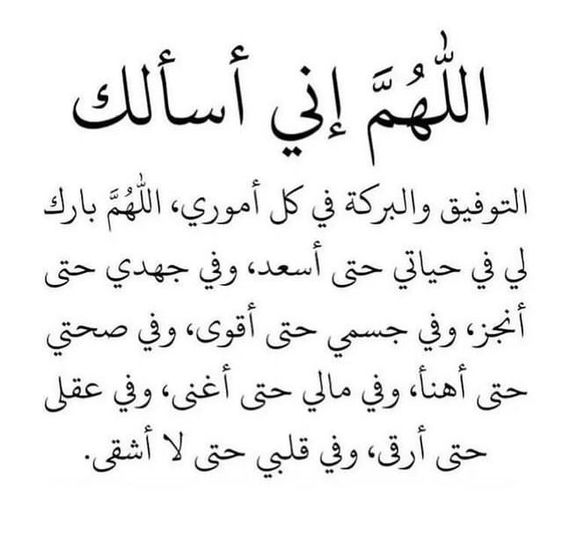 - رب لا تحجب دعوتي، ولا ترد مسألتي، ولا تدعني بحسرتي، ولا تكلني إلى حولي وقوتي، وارحم عجزي فقد ضاق صدري، وتاه فكري وتحيرت في أمري، وأنت العالم سبحانك بسري وجهري، المالك لنفعي وضري، القادر على تفريج كربي وتيسير عسري.