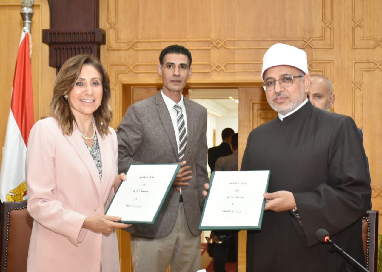 وقعت الدكتورة نيفين الكيلاني، وزيرة الثقافة، والدكتور سلامة جمعة داود، رئيس جامعة الأزهر بروتوكول تعاون بين الوزارة والجامعة، يهدف إلى تعزيز وتدعيم أوجه الشراكة الاستراتيجية المرتبطة بتنفيذ محور بناء الإنسان المصري، وصقله ثقافيًا وتوعويًا، بما يخدم تأصيل مفاهيم الوسطية والتسامح والتعايش السلمي بين الجميع.