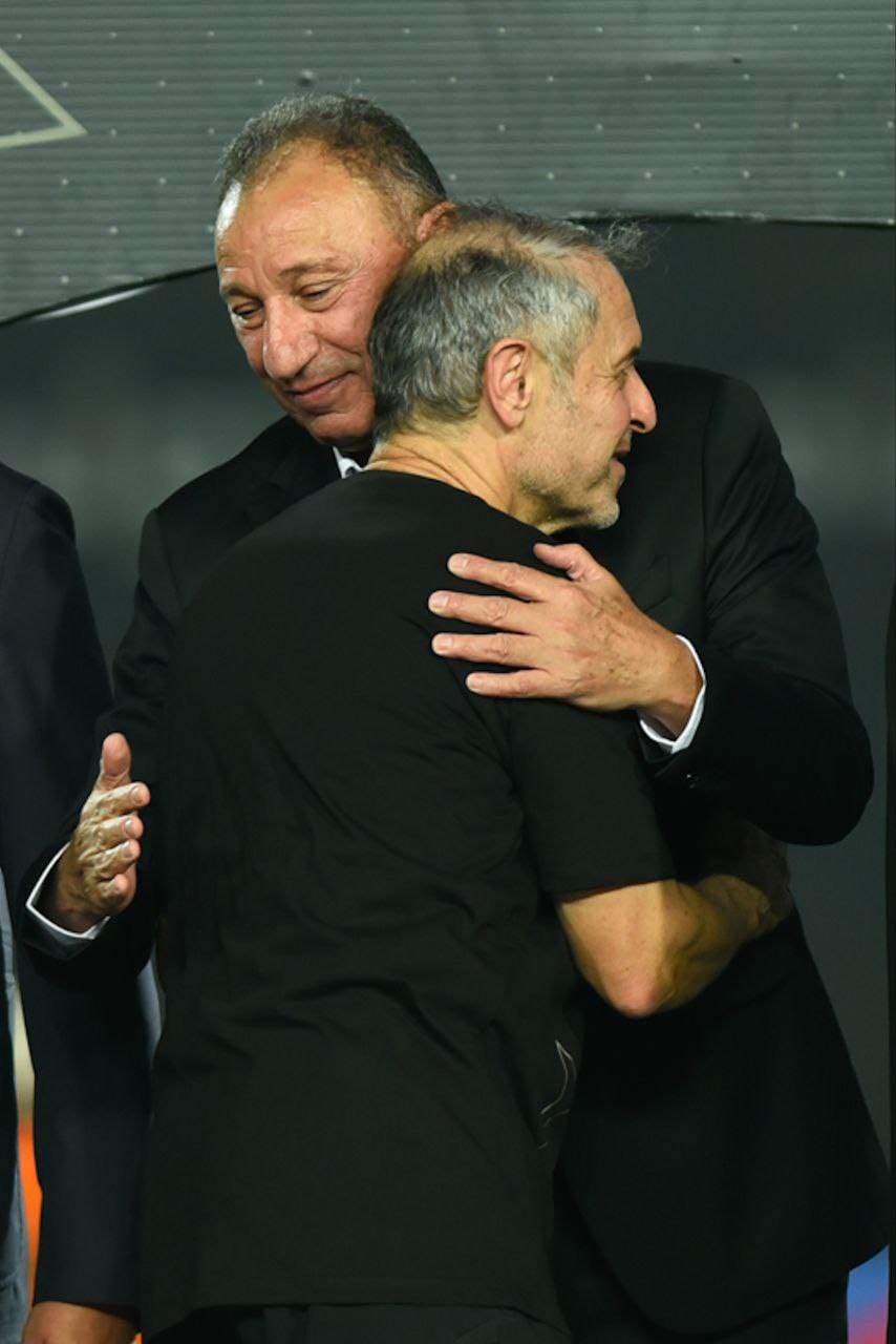 سلم محمود الخطيب رئيس النادي الأهلي، وبرفقته أحمد دياب رئيس رابطة الأندية المصرية المحترفة، محمد الشناوي كابتن الفريق درع الدوري المصري، والذي يحمل رقم 43 في تاريخ النادي الأحمر.