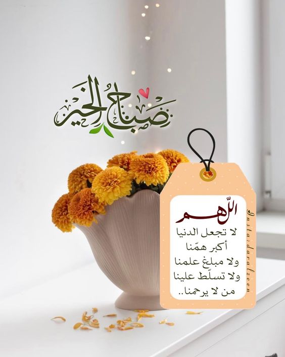 - ربي اجعل هذا الصباح خيرًا لكل قلب أودع امانيه عندك وينتظر الفرج منك وحدك اللهم إني أسألك أن تحفظ علينا النعم وتدفع عنا النقم وأن ترزقنا حلو الحياة وخير العطاء وسعة الرزق وراحة البال ولباس العافية وحسن الخاتمة والفردوس الأعلى من الجنة ولوالدينا وأهلنا ومن نحب.