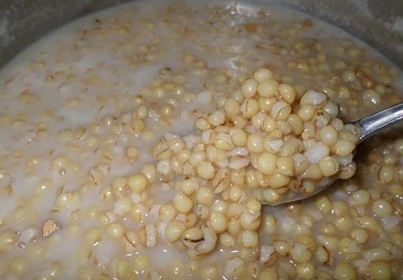 - وبعد ذلك يتم سلق القمح في الماء حتى يتشرب الماء ويصبح ناضج.