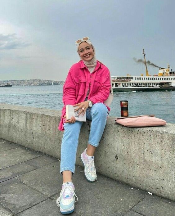 - البنطال الجينز قطعة أساسية في دولابك تتناسب معه كل قطع الملابس العلوية مع تنسيق الحجاب المناسب.