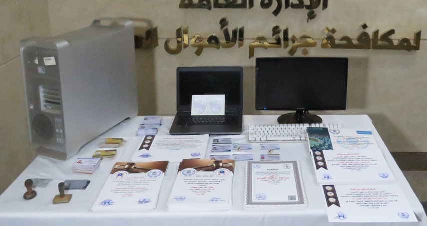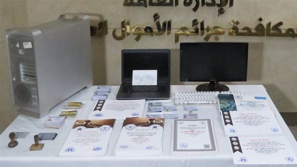 عقب تقنين الإجراءات تمكنت الأجهزة الأمنية من استهدافها وضبطها بمحل سكنها، وبتفتيش مقر الكيان المُشار إليه تم ضبط عدد من الشهادات والكارنيهات مُعدة للاستخدام منسوب صدورها للعديد من الجهات – 2 أكلاشيه – جهاز لاب توب – هاتف محمول.