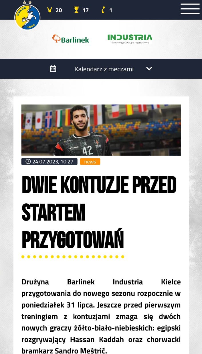 ونشر الموقع الرسمي لفريق كيلسي البولندي، أن الفريق سيبدأ استعداداته للموسم الرياضي الجديد بعد أسبوع واحد فقط من الآن وسيغيب حسن قداح لاعب منتخب مصر عن أولى الحصص التدريبية للإصابة.