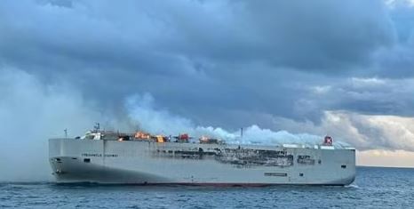 حريق سفينة شحن على متنها 3000 سيارة قادمة من ألمانيا إلى مصر