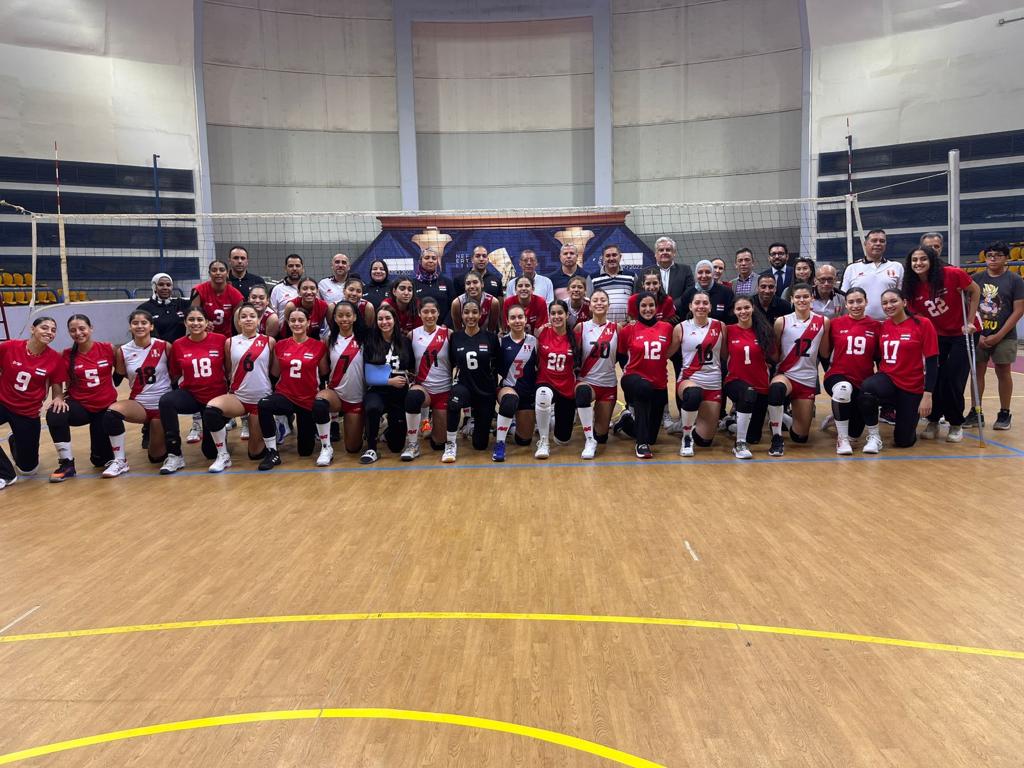 وشهدت المباراة حضور كل من خوسيه بيتا نكورت سفير دولة بيرو بالقاهرة، ومارتن إدواردو بالاسيوس رانجيل الوزير المفوض لدولة بيرو ونائب رئيس البعثة، وجيانكارلو أندريه بيدراوا رويز رئيس القسم القنصلي، والمهندس ياسر قمر رئيس الاتحاد المصري للكرة الطائرة والقائم بأعمال رئيس الاتحاد العربي، ووائل قنديل عضو مجلس إدارة الاتحاد، وحسن عابد المدير التنفيذي للاتحاد، وماركو أنطونيو المشرف على الجهاز الفني للمنتخبات الوطنية للناشئات والشابات، وابراهيم ثابت مرافق المنتخب بيرو.