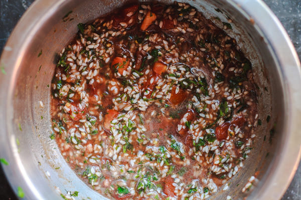 - عند وضع مقادير المحشي اتركي خلطة المحشي 10 دقائق قبل الحشو كي يتشرب الأرز الماء الزائد والتوابل.