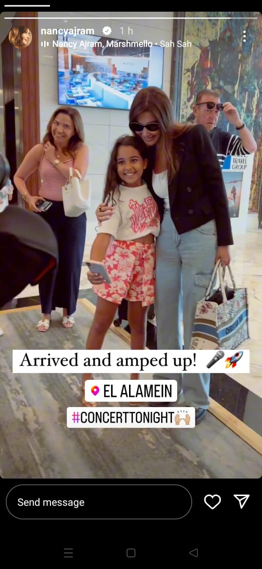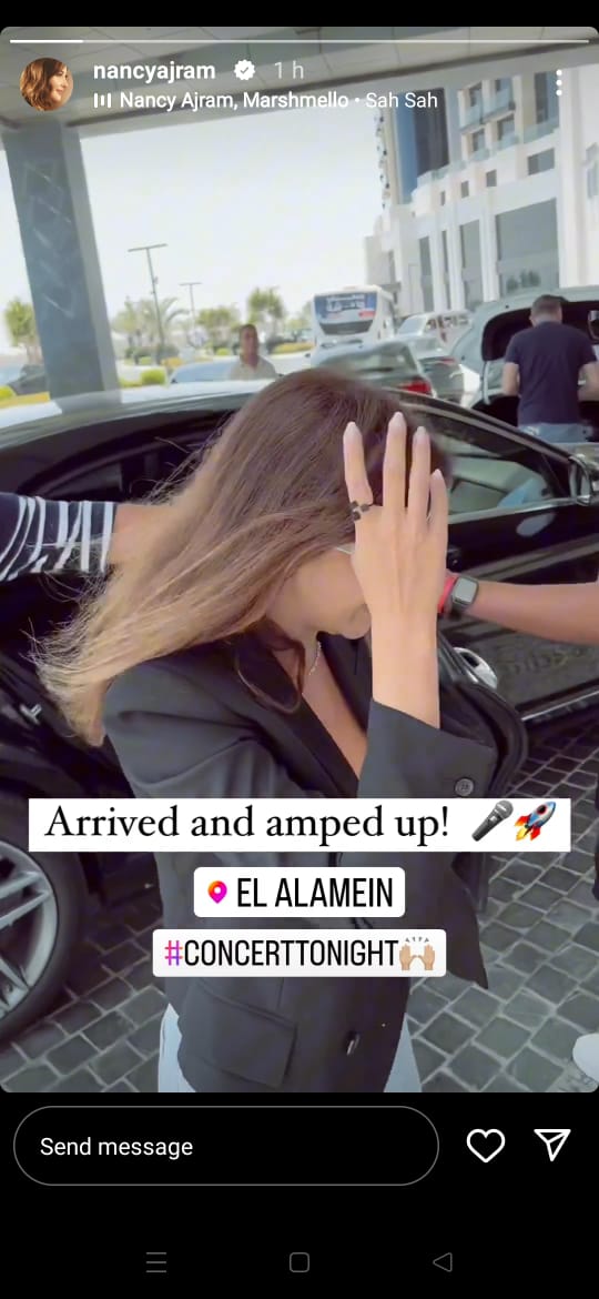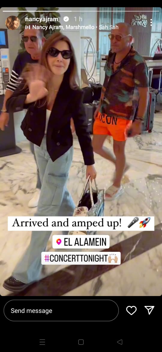 شاركت نانسي عجرم، مجموعة من الصور عبر حسابها الشخصي بموقع انستجرام لحظة ووصلها إلى مدينة العلمين الجديدة، قبل ساعات من انطلاق حفلها.