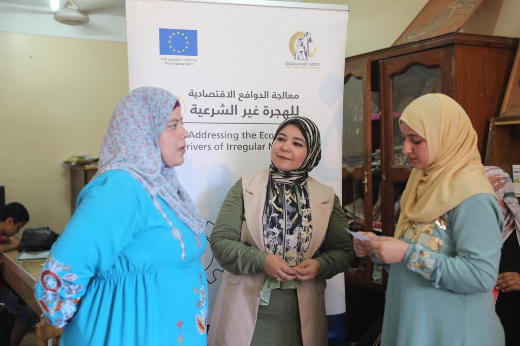 وأضافت أن مشروع معالجة الدوافع الاقتصادية للهجرة غير الشرعية يهدف إلى العمل على تشجيع توفير بديل للهجرة غير الشرعية من خلال التشجيع على تنمية المشروعات وإيجاد فرص عمل للمرأة والشباب بمحافظات البحيرة والغربية والأقصر والمنيا، بالإضافة إلى تنفيذ أنشطة توعوية لتسليط الضوء على المخاطر المرتبطة بالهجرة غير الشرعية بناءً على الجهود السابقة، وتضمن التدريب العديد من الموضوعات الهامة منها التوعية المالية وكيفية التسويق للمشروع والتسعير وكيفية التمويل وكيفية الإدارة الجيدة للمشروع وكذلك أهمية مشاركة الأسرة في كل قرار يخص مشروعاتهن.