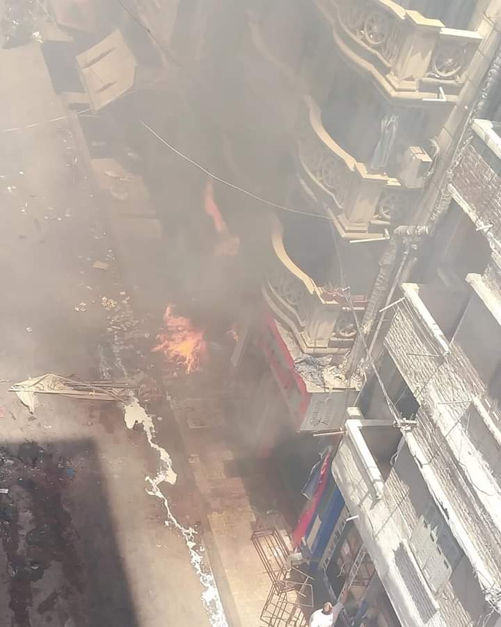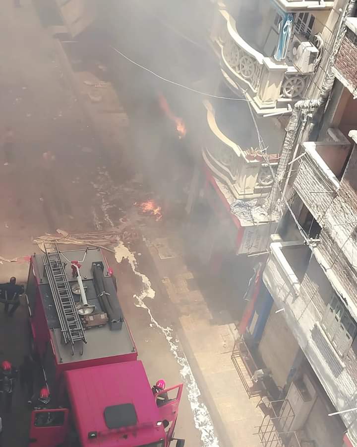 حريق هائل بمحل تجاري لبيع السلع الغذائية بمحرم بك بالإسكندرية