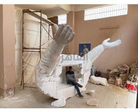 وأضاف: وبعد ذلك تمت سباكة التمثال من خامة البرونز وهو يزن عشرة أطنان ويزيد طوله عن 9 أمتار وعرضه 4 أمتار ويعلوه قاعدة بارتفاع 15 مترا، واستغرق نحته ثلاثة أشهر.