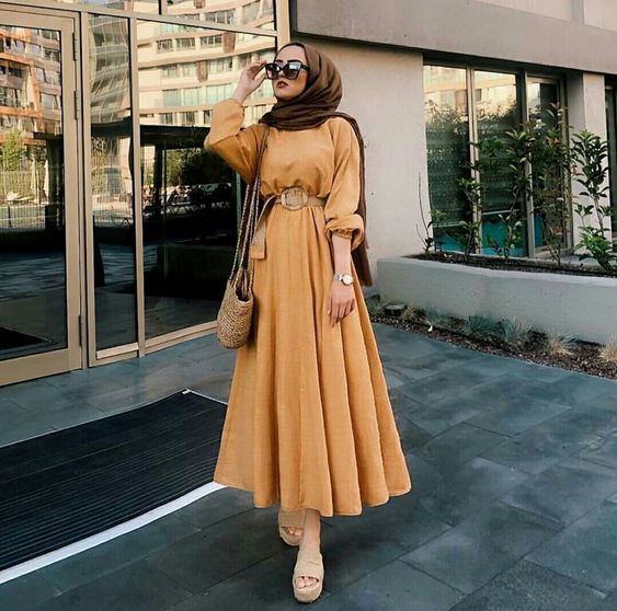 - الفستان الجملي المنقوش سيظهر عليكي كالأميرات إن نسقتيه مع حجاب بيج هادئ.