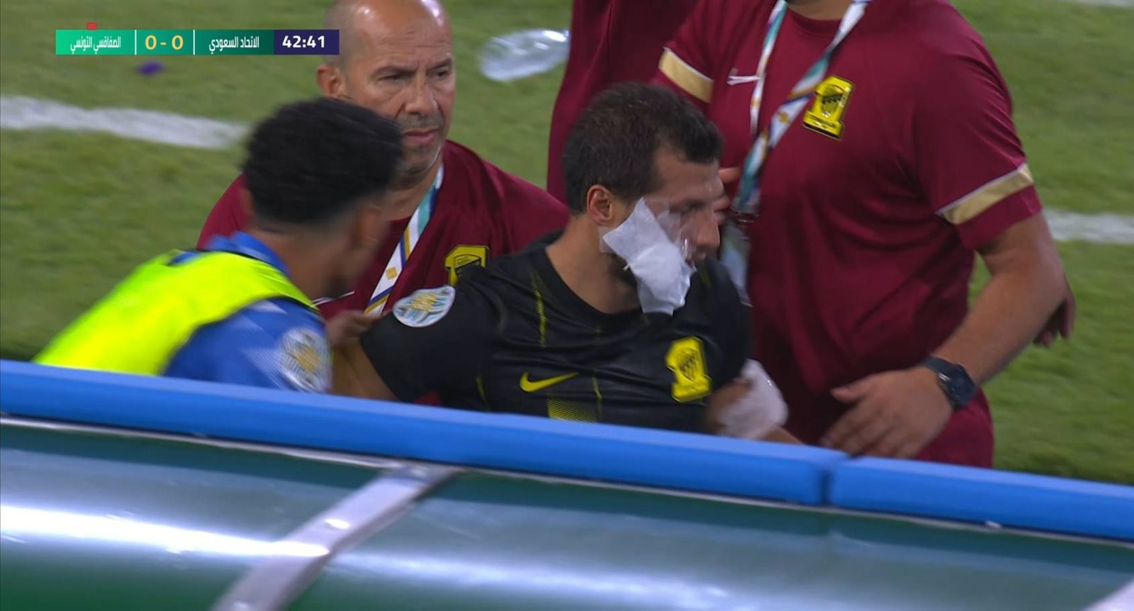 وقرر المدرب البرتغالي نونو سانتوس المدير الفني لفريق اتحاد جدة، استبدال طارق حامد بعد إصابته باللاعب سلطان الفرحان بالدقيقة 44 بالشوط الأول.