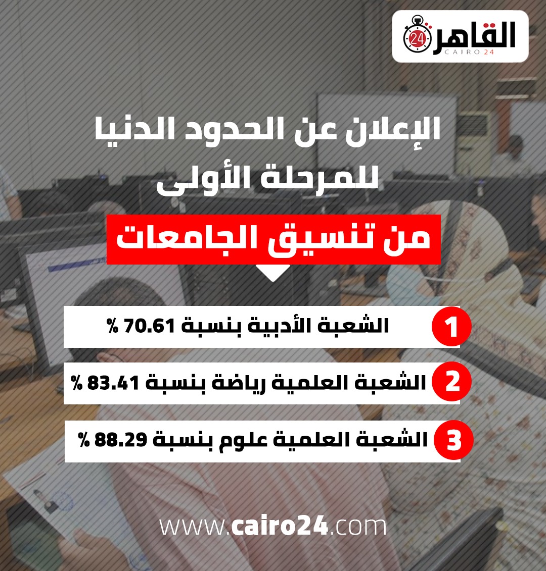 في هذا السياق، أكدت وزارة التعليم العالي والبحث العلمي في بيان لها، أن الحد الأدنى للتقديم في المرحلة الأولي من تنسيق الجامعات 2023 في الشعب الثلاث لـ الشعبة العلمية 362 درجة فأكثر أي بنسبة 88.29% فأكثر 22304.