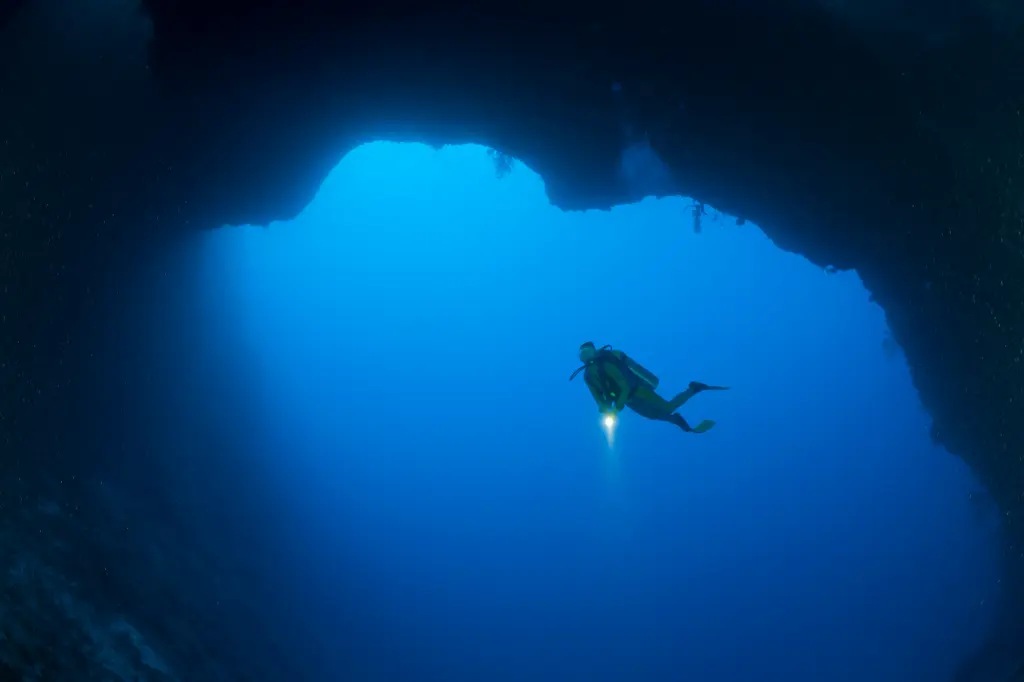 وصل الغواصون إلى قاع الحفرة الزرقاء العظيمة الشهيرة في جزر الكاريبي، واكتشفوا سرًا كان كامنًا في قاع الحفرة.
